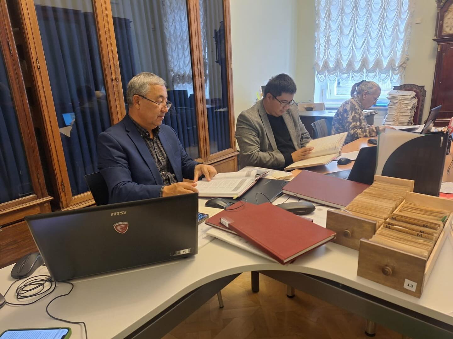 ”Сарайшық” музей- қорығы ғалымдары ҚР Мәдениет және ақпарат министрлігі Мәдениет комитетінің «Алтынордалық Сарайшық, Ұшқан, Ащысай, Қарағайлы ескерткіштері тарихи-мәдени мұра контекстісінде (ХІІІ-ХV ғғ.)» бағдарламасы аясында Ресей Федерациясының Мемлекеттік Эрмитаж музейінің ғылыми архивінде ғылыми-зерттеу ізденістерін жүргізуде.
